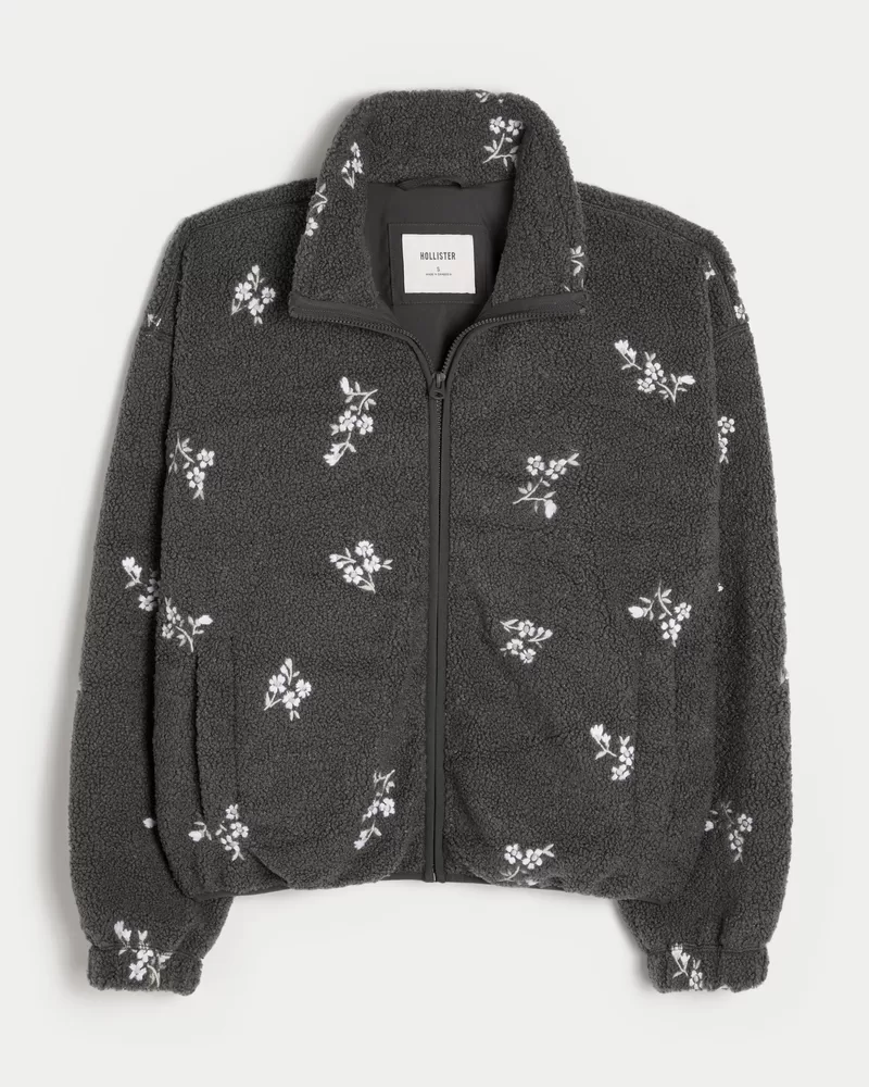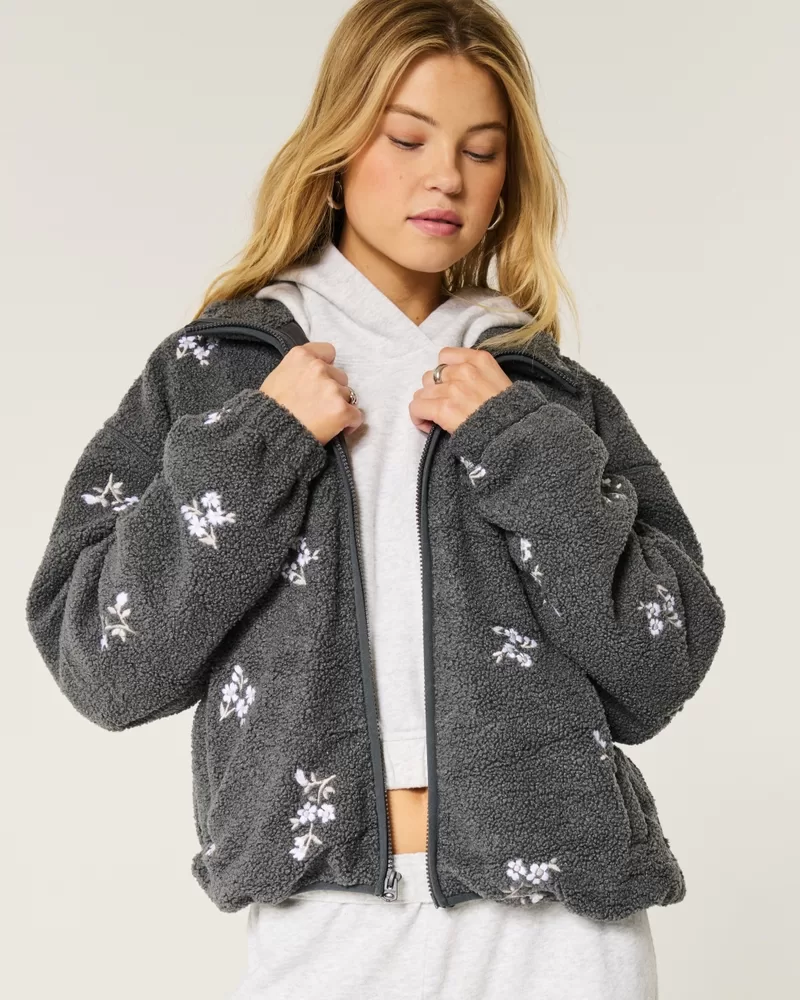 Embroidered Sherpa Fleece Jacket