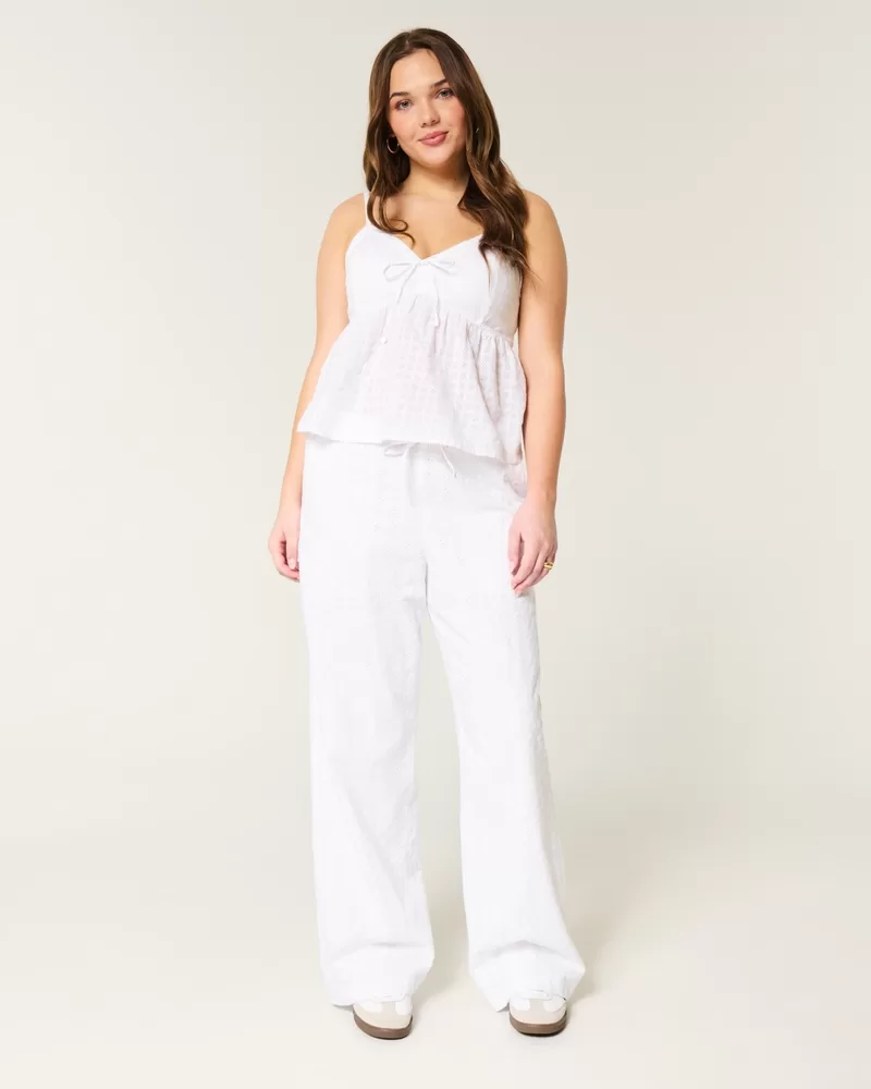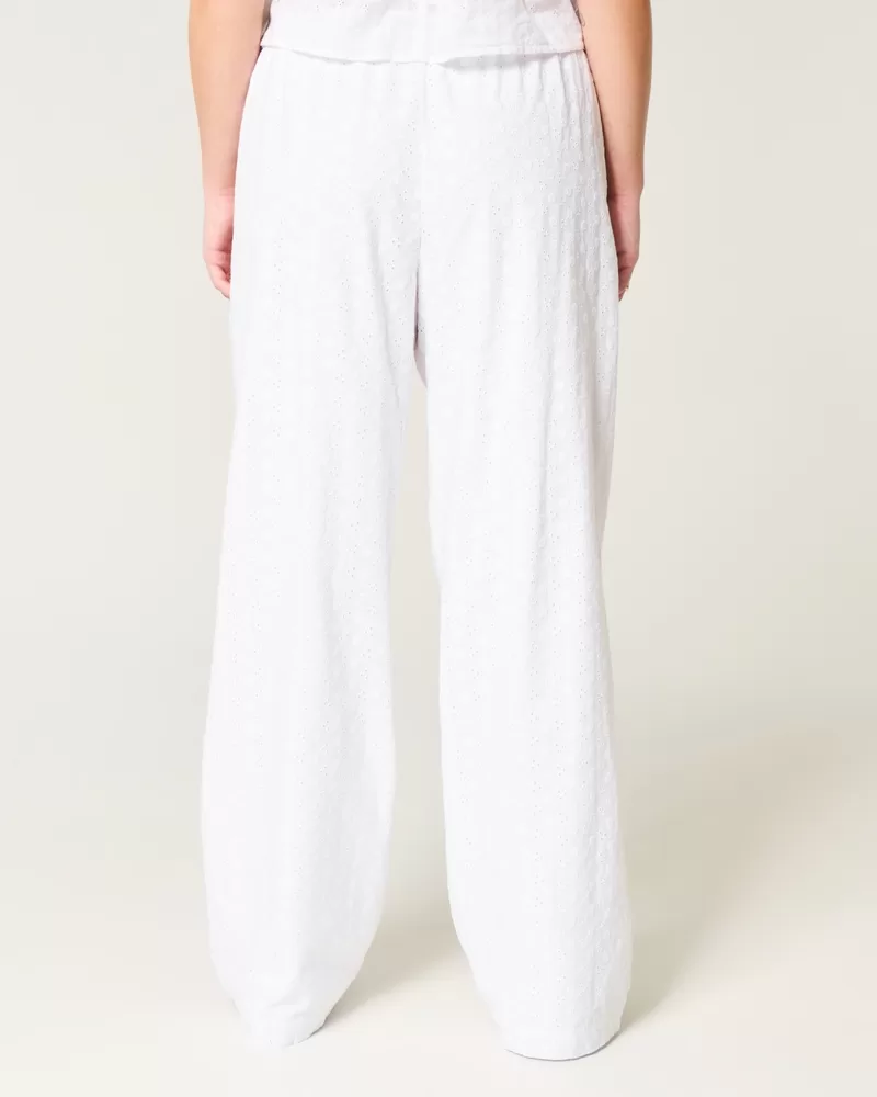 Super cute and comfy pants designed with an adjustable-rise pull-on drawstring waist and baggy leg. All-over eyelet embroidery, pockets. Imported.
