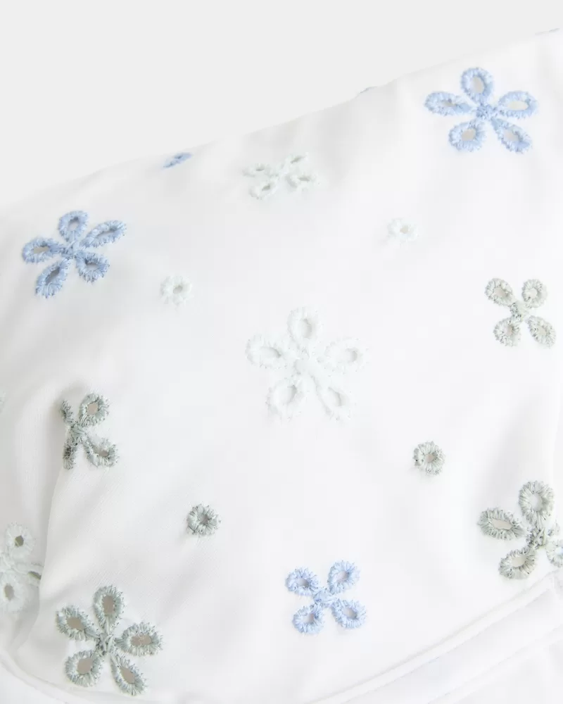 Your new fave bikini top is designed with a flattering underwire silhouette and all-over eyelet details. Adjustable straps, removable padding, swan hook closure.