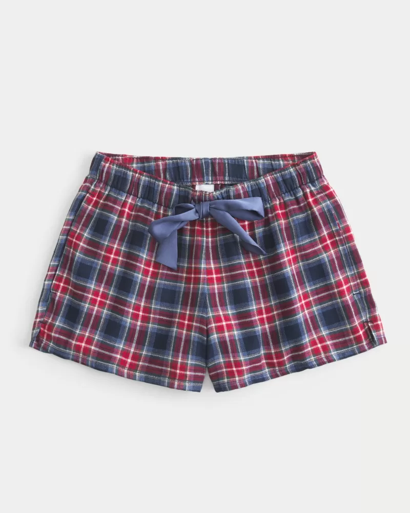 Super soft flannel sleep shorts with a tie waist and pockets. Plaid pattern. Imported.