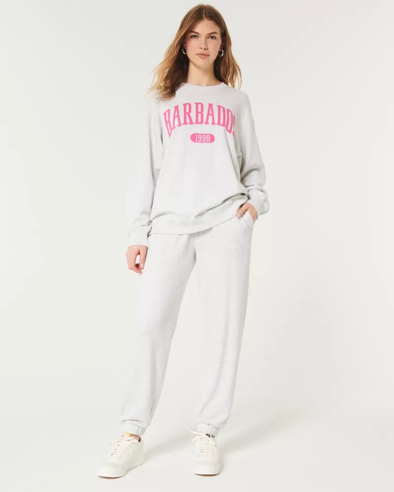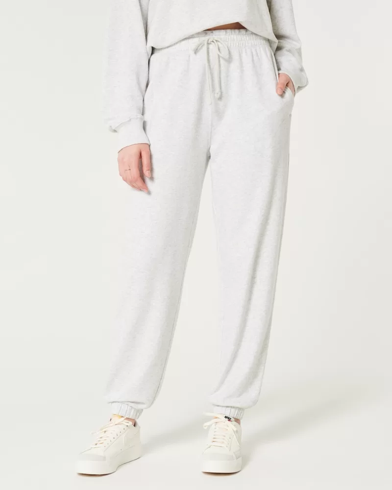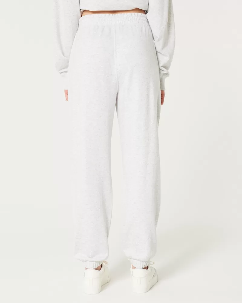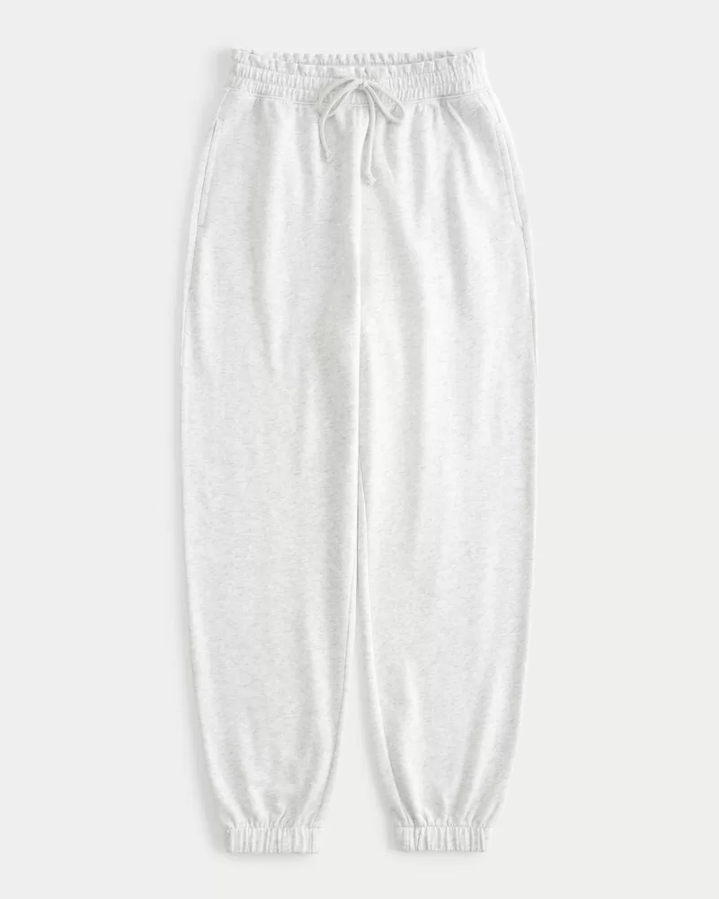 Super soft fleece joggers designed with a relaxed leg and soft paper-bag-style drawstring waist. Embroidered logo icon, banded hems, pockets. Imported.