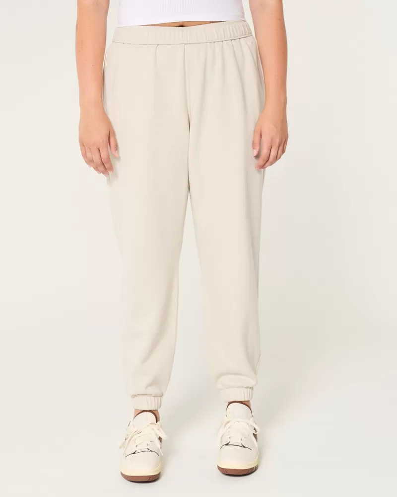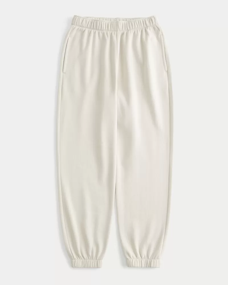 Super soft joggers in cozy fleece fabric, designed with a relaxed leg, banded waist and banded hems. Pockets, embroidered logo icon. Imported.