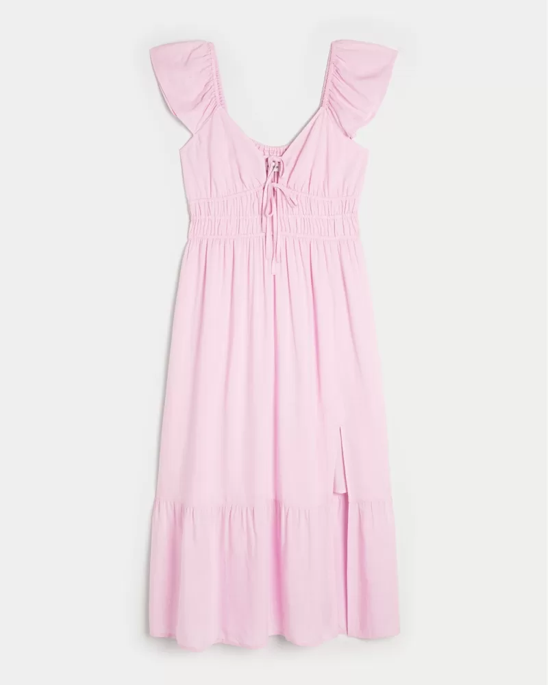 Flutter Sleeve Double-Tie Midi Dress