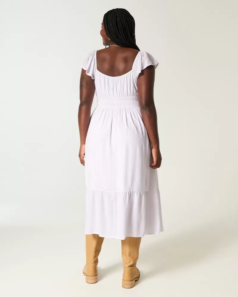 Flutter Sleeve Double-Tie Midi Dress