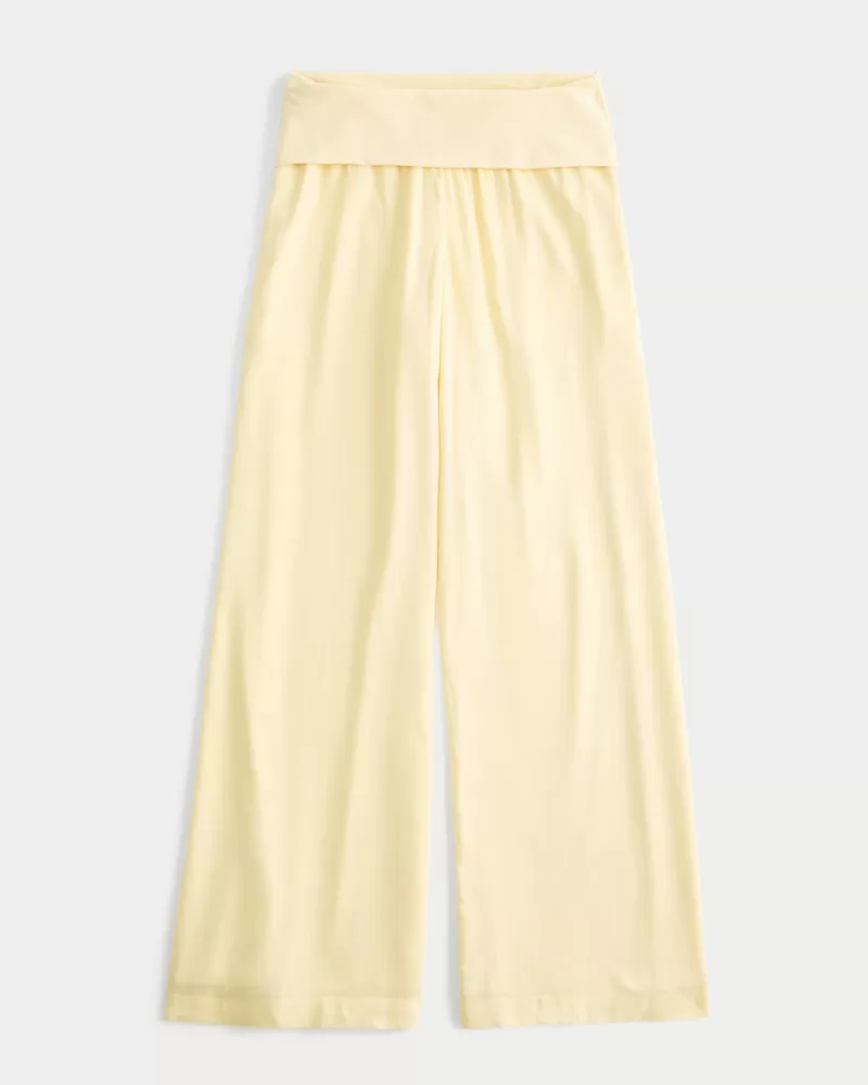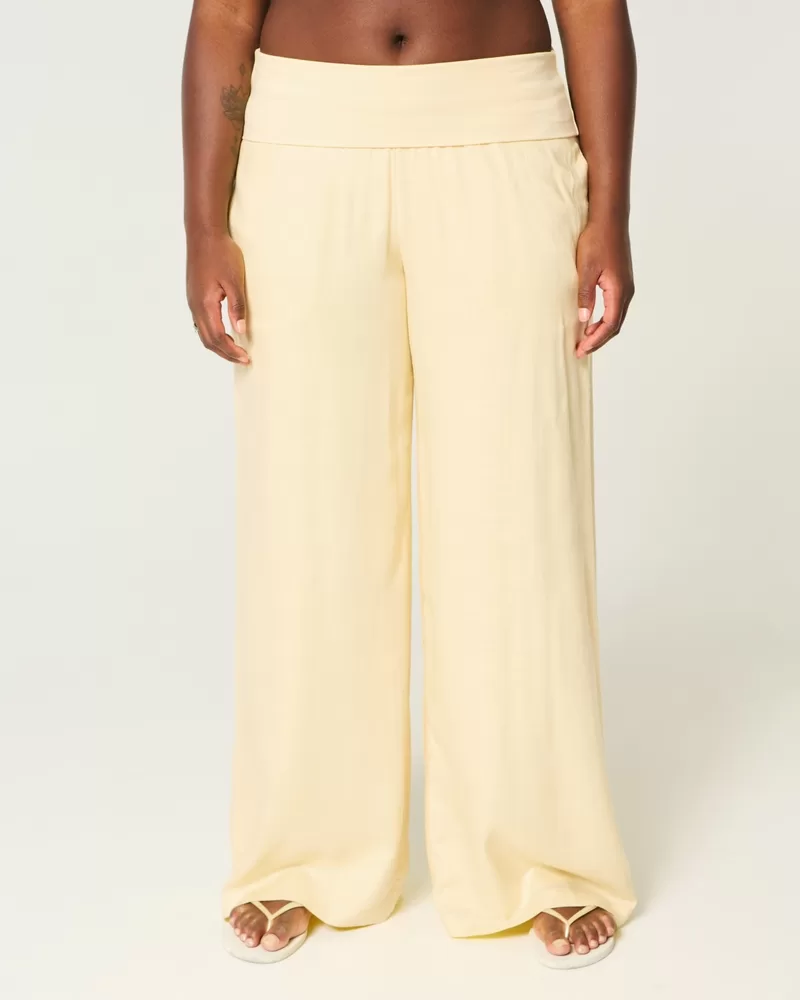 Comfy and super soft pants in slubby fabric, designed with a foldover waist and super baggy leg. Pockets. Imported.
