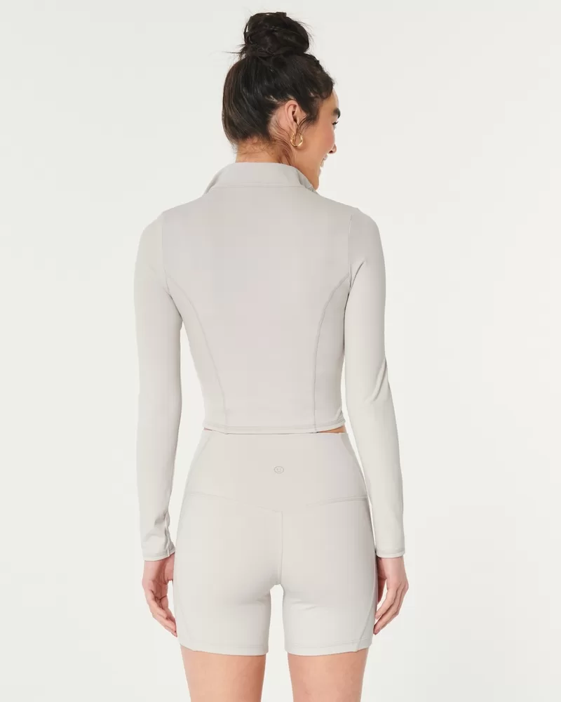 Designed in our breathable, 4-way stretch, moisture-wicking Boost fabric with a super soft, brushed feel. Zip-up closure, seam detailing, mock neckline, long sleeves, GH logo detail. Imported.