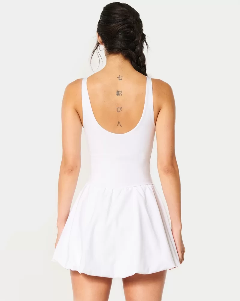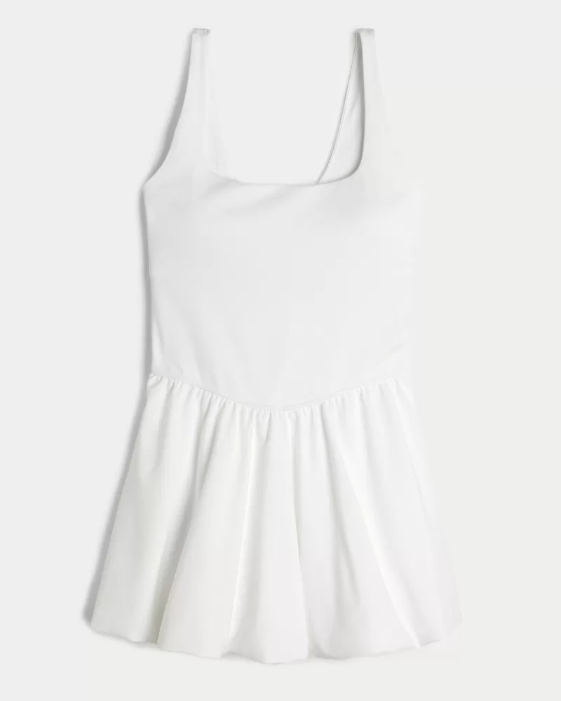 This cute and super soft bubble dress features a built-in shelf bra with removable pads. Ruffled hem, built-in shorts with pockets. Imported.