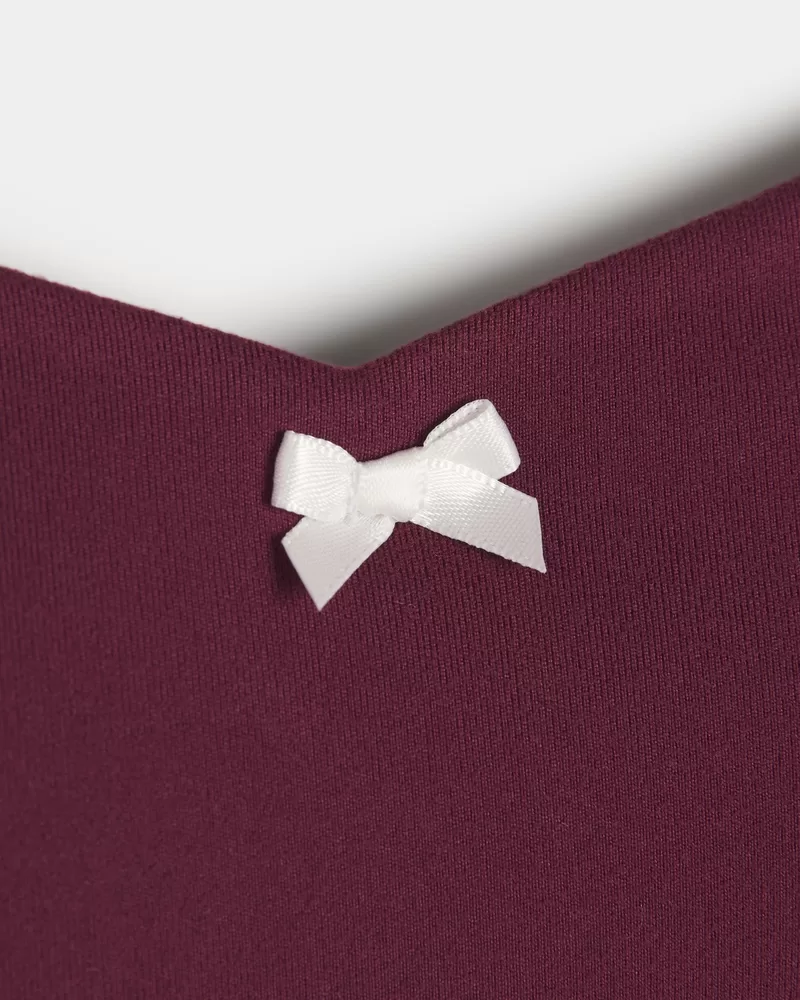 An ultra-comfortable active gameday dress designed in our breathable, 4-way stretch, moisture-wicking Recharge fabric with a super soft, brushed feel. Built-in shelf bra with removable pads, built-in bathroom-friendly shorts with pocket. Cute bow detail at neckline, adjustable straps.