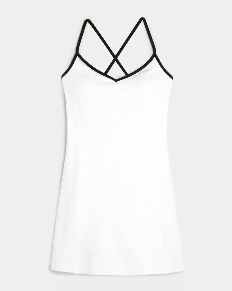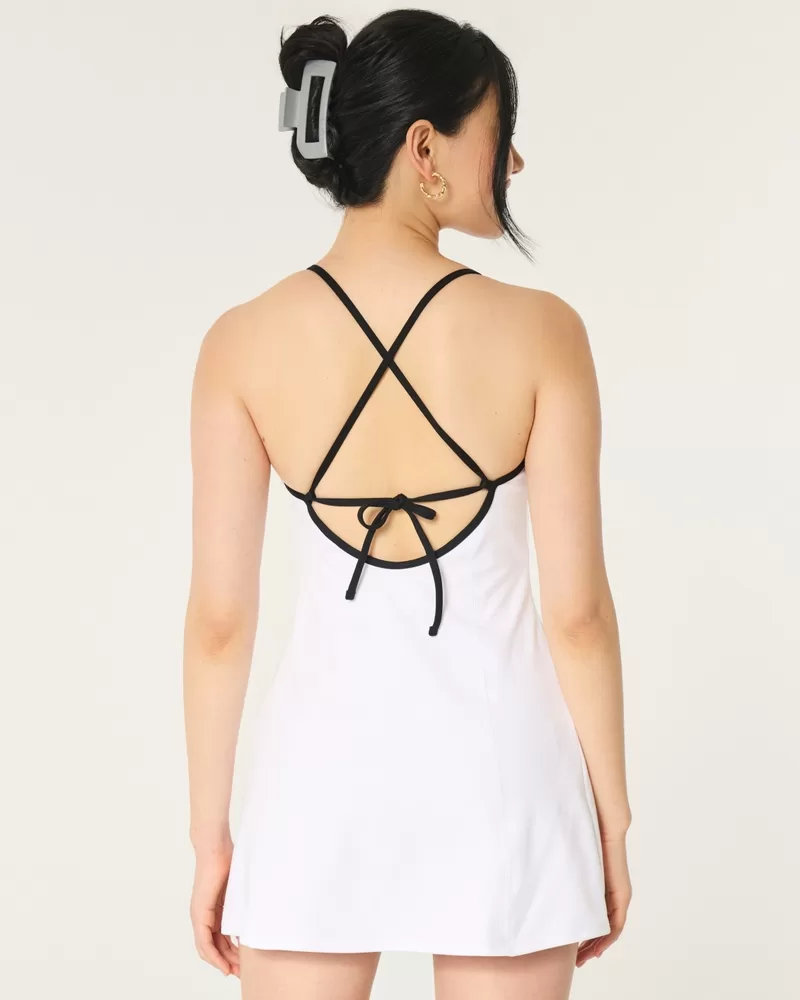 An ultra-comfortable active dress designed in our breathable, 4-way stretch, moisture-wicking Recharge fabric with a super soft, brushed feel. Strappy back, tipped detailing. Imported.