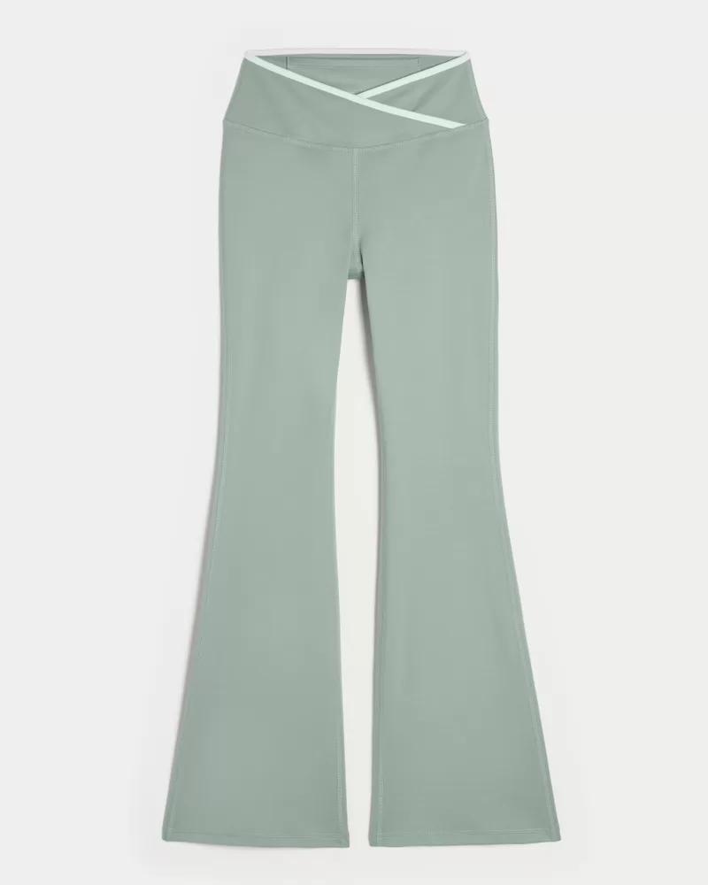 These cute flare pants are designed in our breathable, 4-way stretch, moisture-wicking Recharge fabric with a super soft, brushed feel. Crossover waist with tipped detailing, slim leg with a flared hem. Imported.