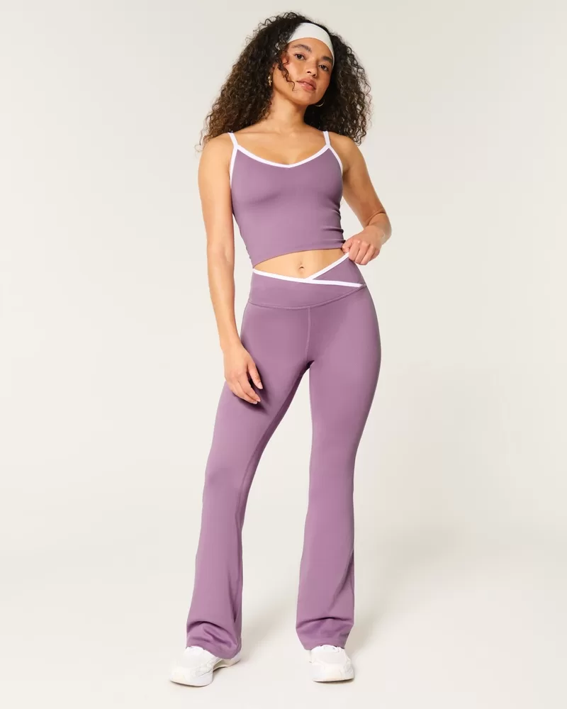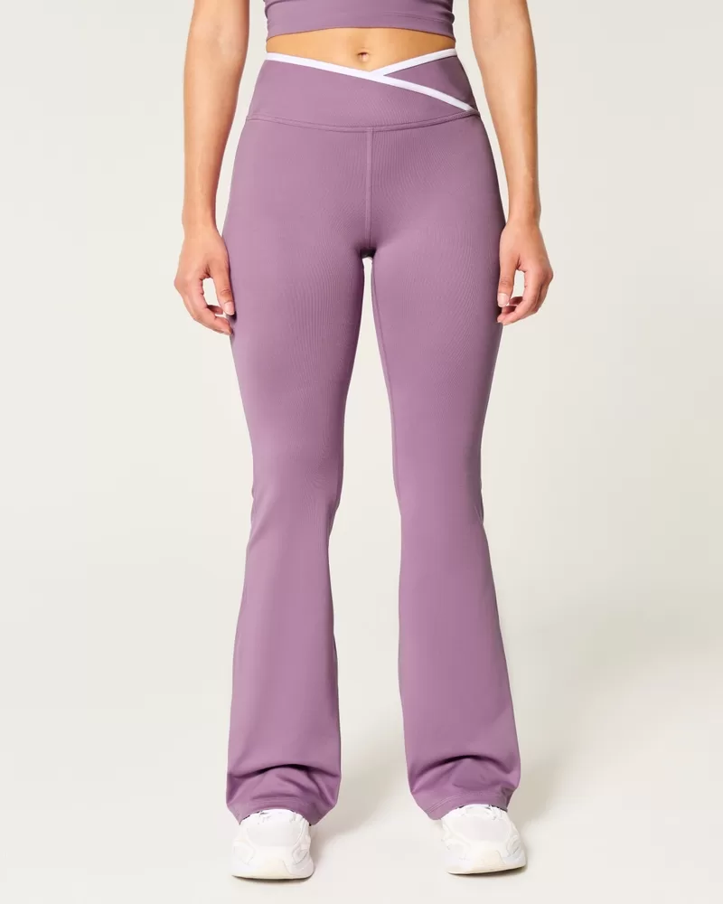 These cute flare pants are designed in our breathable, 4-way stretch, moisture-wicking Recharge fabric with a super soft, brushed feel. Crossover waist with tipped detailing, slim leg with a flared hem. Imported.