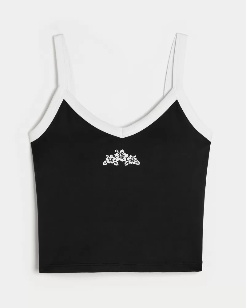 Designed in our breathable, 4-way stretch, moisture-wicking Recharge fabric with a super soft, brushed feel. This comfy tank features a v-neckline, built-in shelf bra and removable pads. Pretty floral print graphic. Imported.