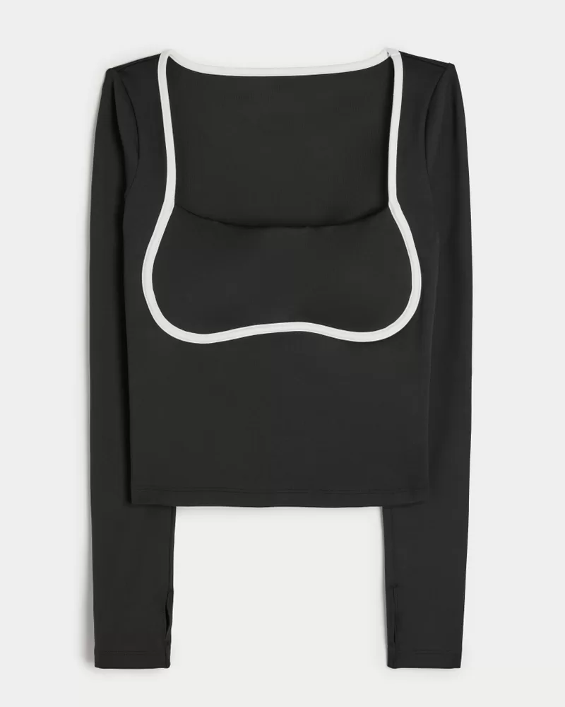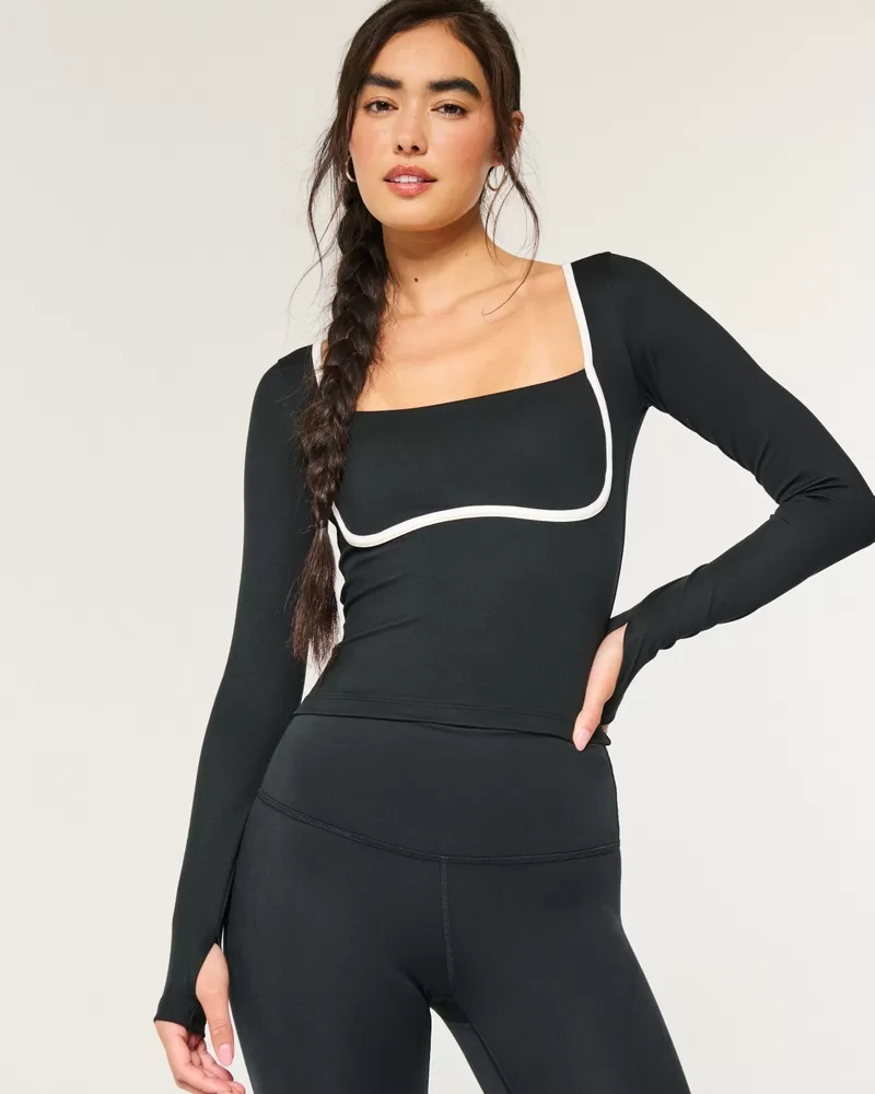 Designed in our breathable, 4-way stretch, moisture-wicking Recharge fabric with a super soft, brushed feel. Long sleeves, square neckline, tipped under-bust detail, thumb openings. Imported.