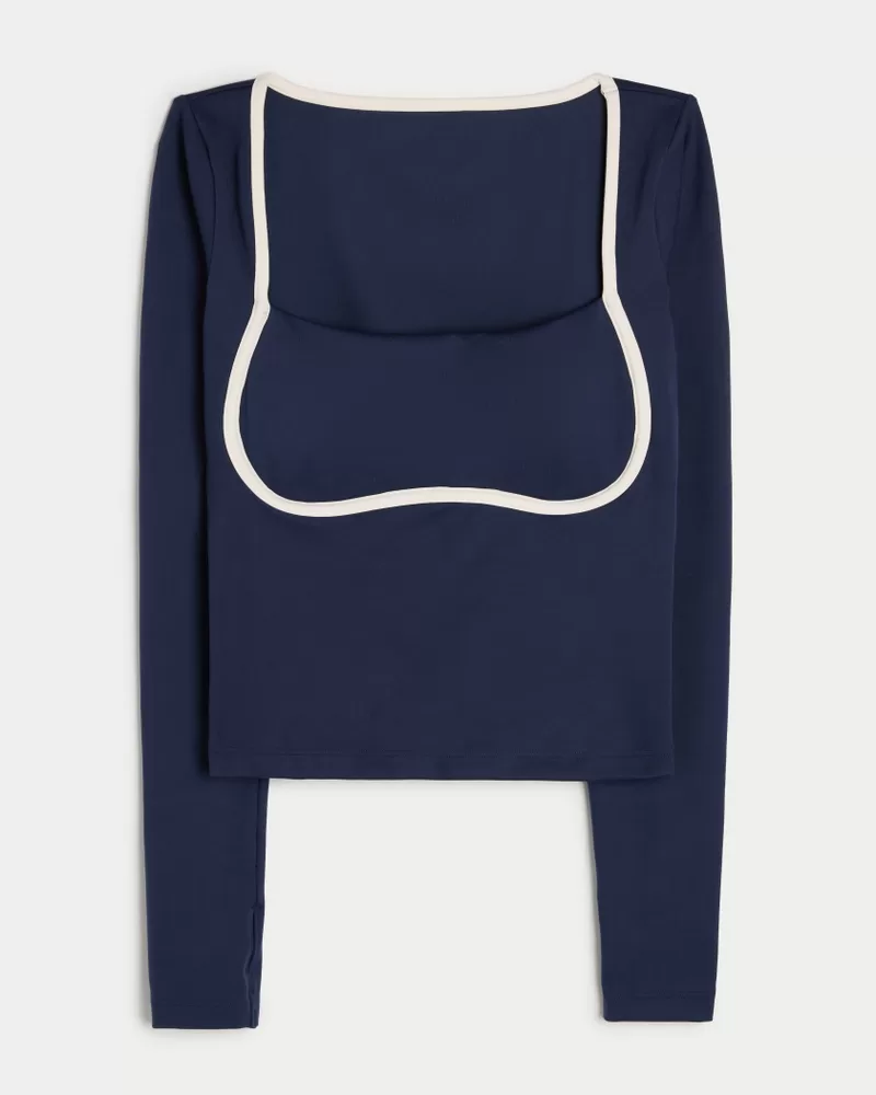 Designed in our breathable, 4-way stretch, moisture-wicking Recharge fabric with a super soft, brushed feel. Long sleeves, square neckline, tipped under-bust detail, thumb openings. Imported.