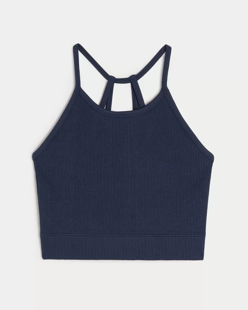 An ultra-comfy tank made with super soft ribbed fabric with a seamless look and feel. High-neckline, strappy back. Imported.