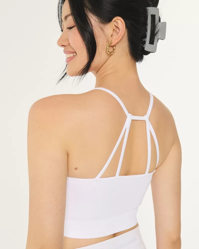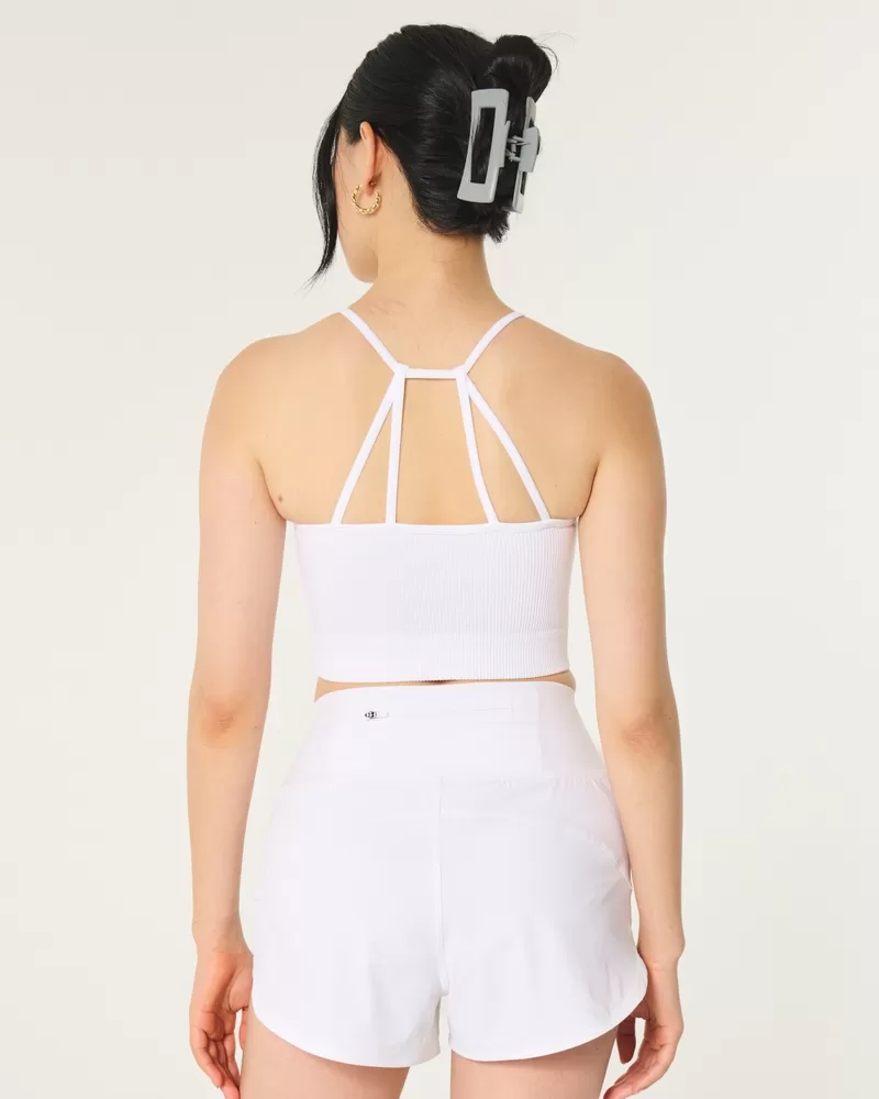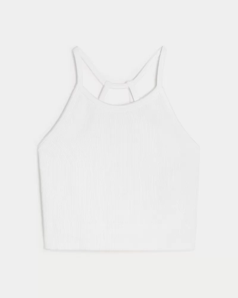 An ultra-comfy tank made with super soft ribbed fabric with a seamless look and feel. High-neckline, strappy back. Imported.