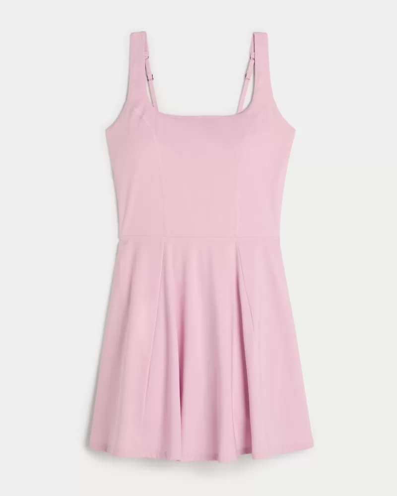 This super soft dress is designed with a sporty skater silhouette and seam detailing. Adjustable straps. Imported.