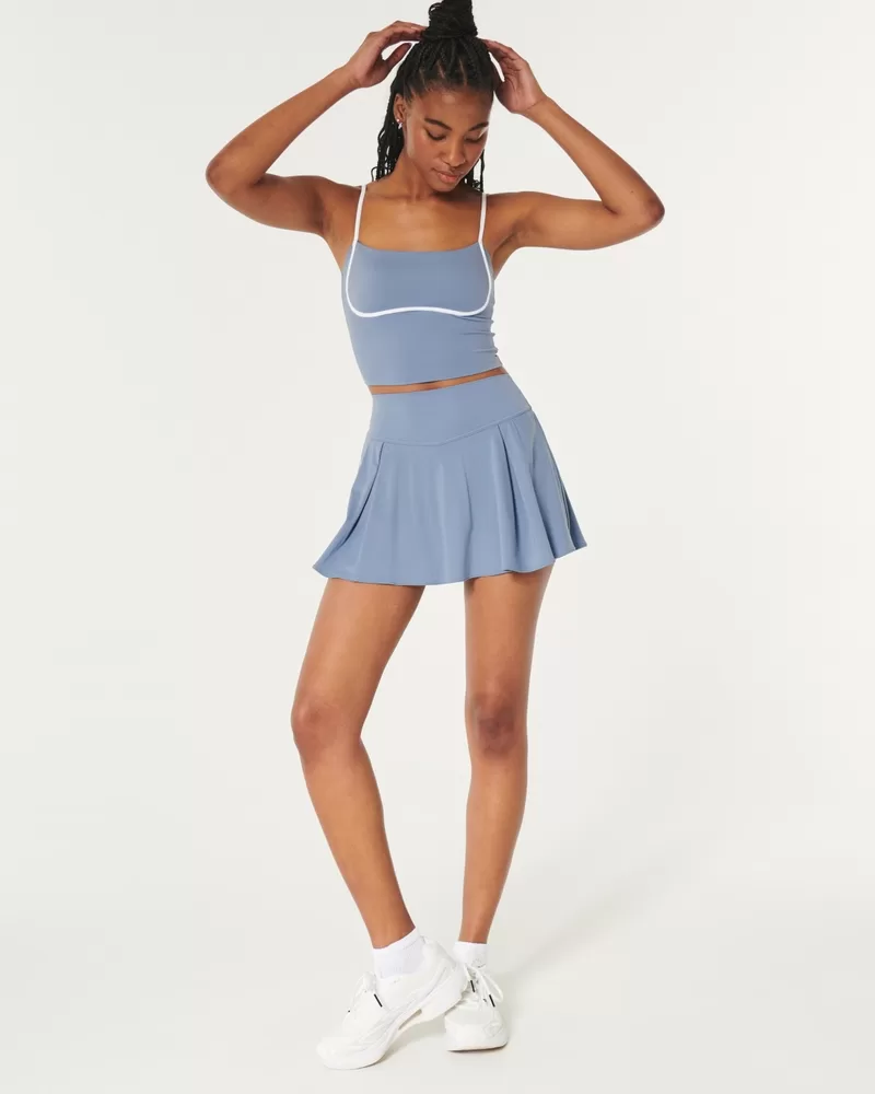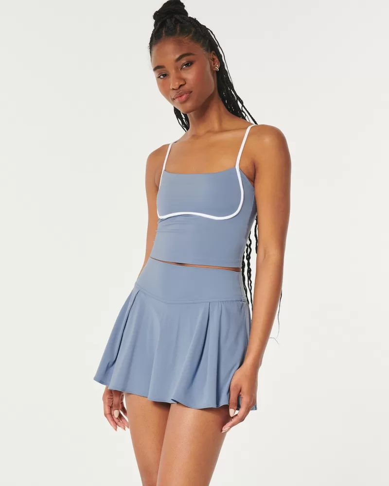 This super comfy skortie is designed with a cute box-pleated silhouette. Soft banded waist, inner shorts. Imported.