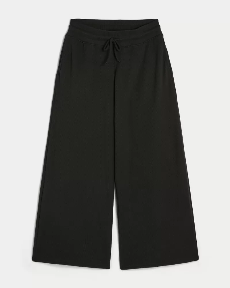 Cozy and super soft pants in waffle fabric. Drawstring waist, pockets, flattering baggy silhouette. Imported.