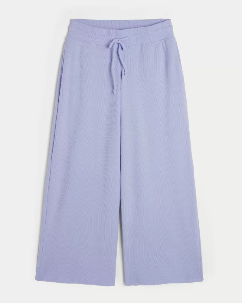 Cozy and super soft pants in waffle fabric. Drawstring waist, pockets, flattering baggy silhouette. Imported.