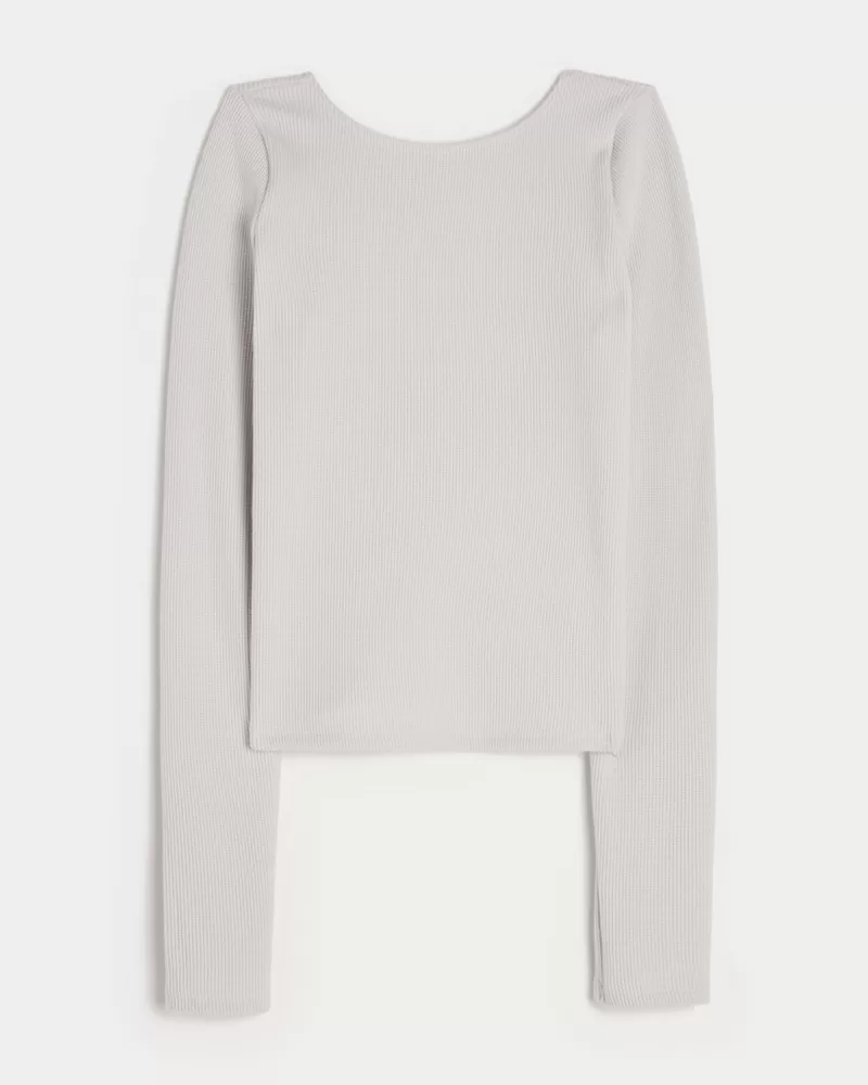 A cozy and super soft long-sleeve top in waffle fabric. Boat neckline.
