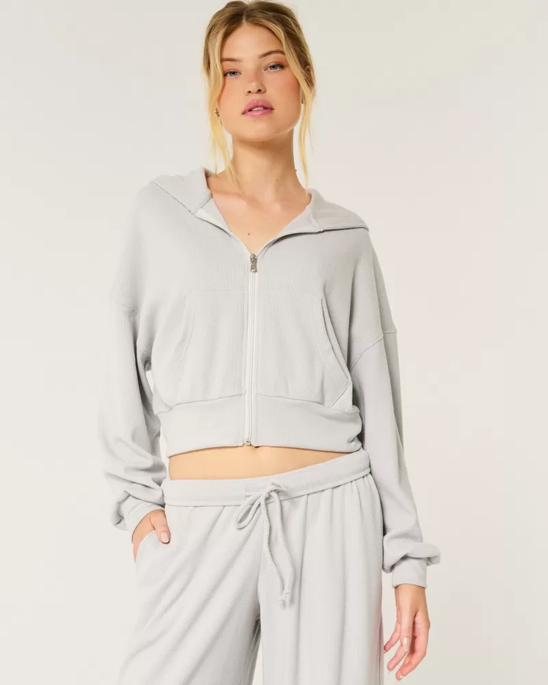 Gilly Hicks Cozy Waffle Zip-Up Hoodie