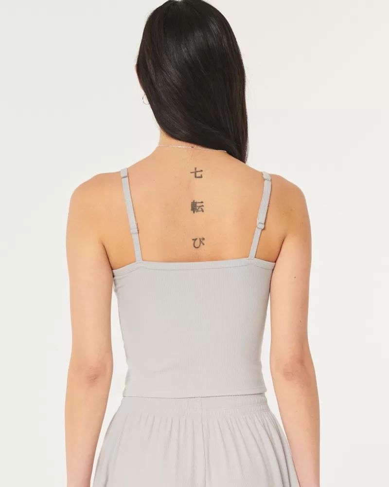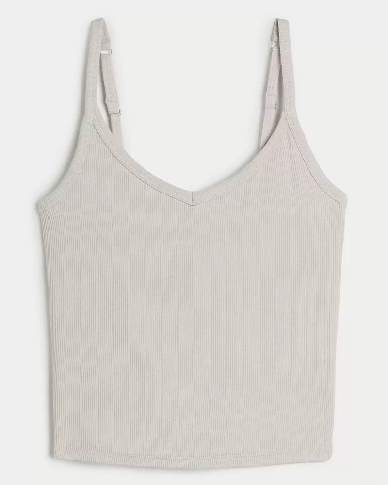 A super soft tank made with super soft jersey ribbed fabric. Plunge neckline, adjustable straps. Imported.