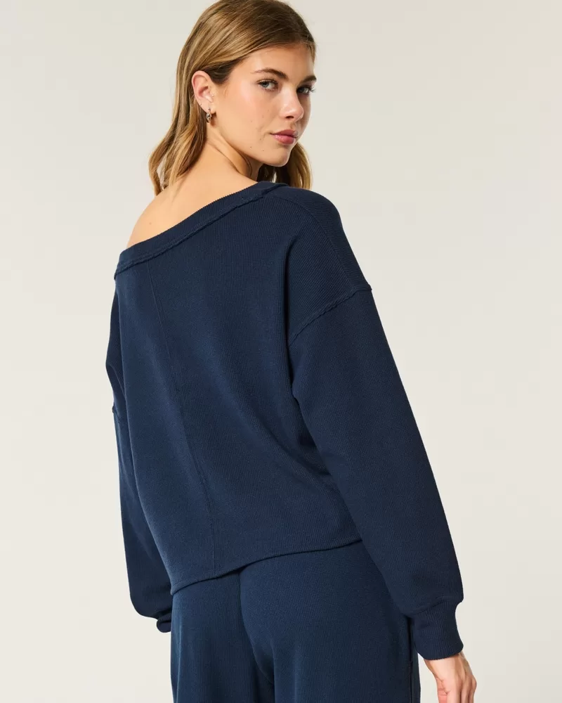 Gilly Hicks Off-the-Shoulder V-Neck Waffle Top