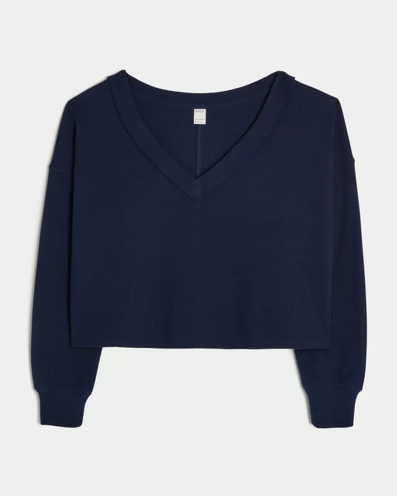 Super soft and cozy, this long-sleeve top is made with waffle fabric and features an off-the-shoulder v-neckline. Imported.