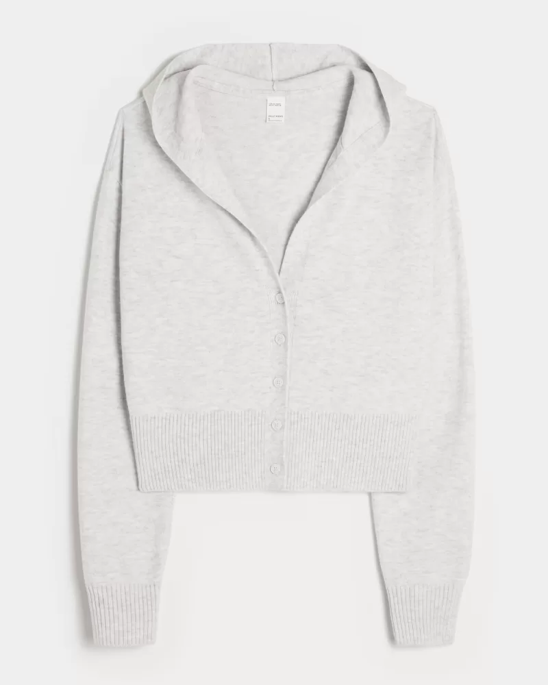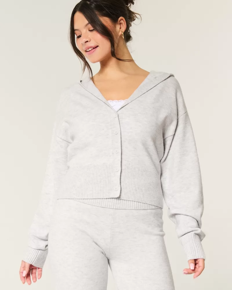 A cozy and super soft cardigan with a hood and full button closure. Ribbed hems, slouchy silhouette. Imported.