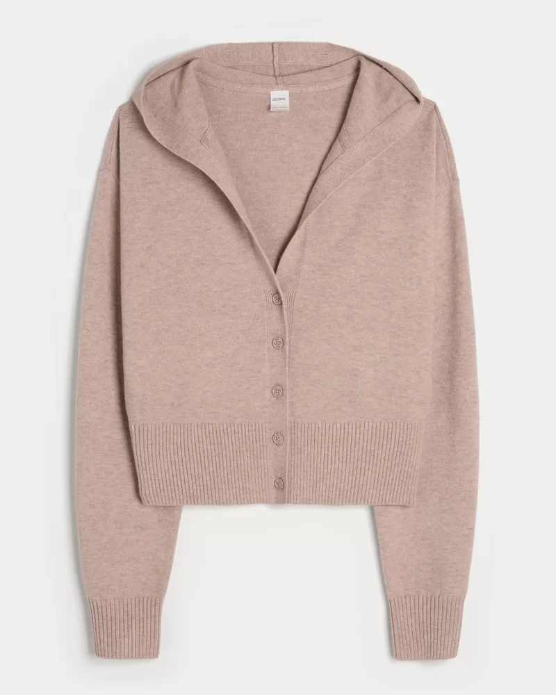 A cozy and super soft cardigan with a hood and full button closure. Ribbed hems, slouchy silhouette. Imported.