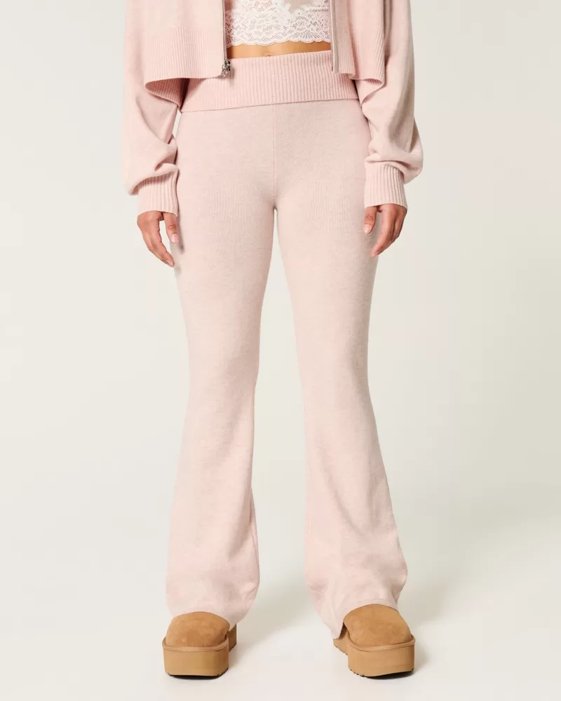 Gilly Hicks Sweater-Knit Foldover Waist Flare Pants
