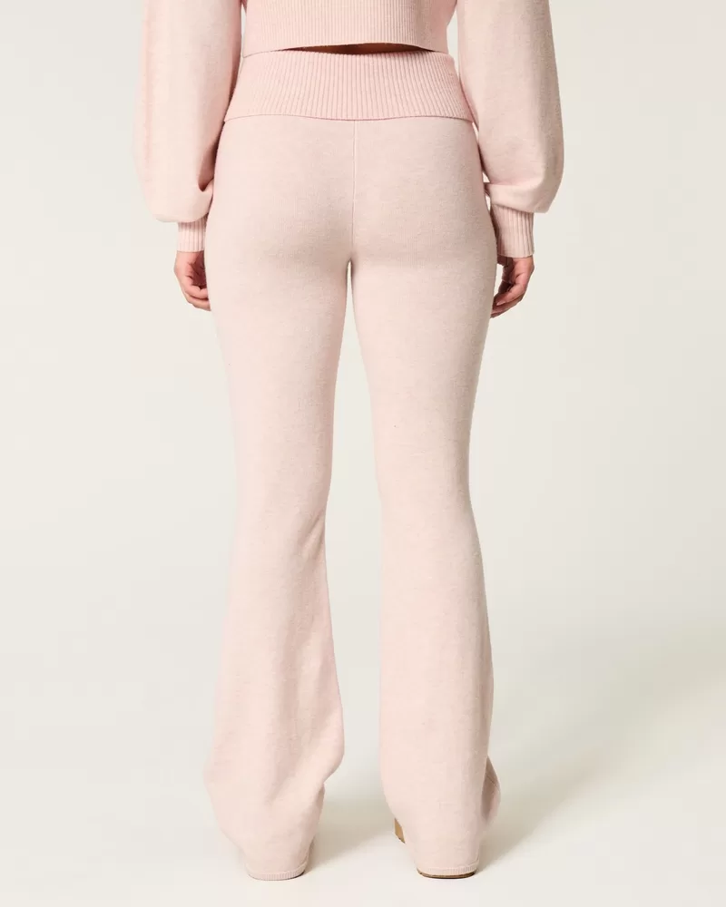 Super soft and cozy flare pants in sweater-knit fabric. Foldover waist, flared hem. Imported.