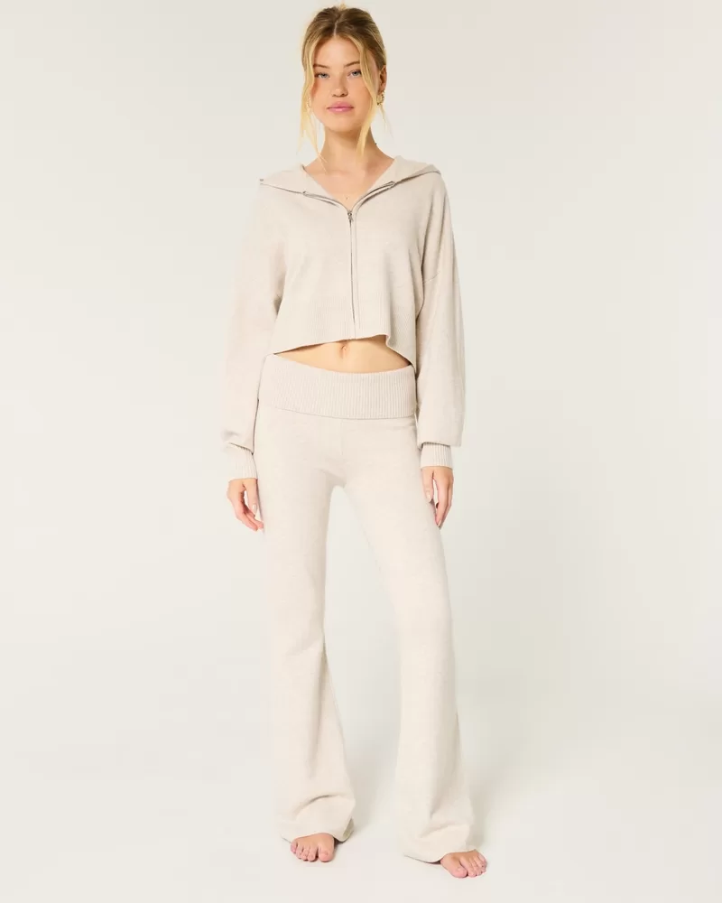 Gilly Hicks Sweater-Knit Foldover Waist Flare Pants