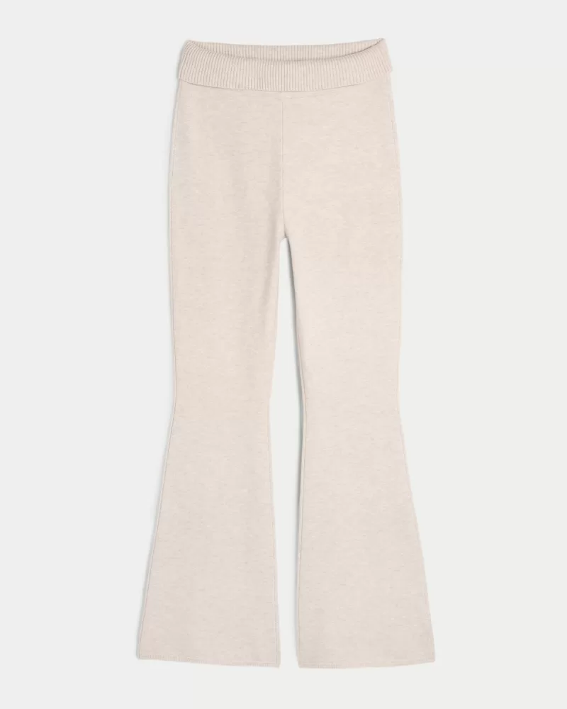 Cute and cozy pants in super soft sweater-knit fabric designed with a flared silhouette from knee to hem. Foldover waist. Imported.