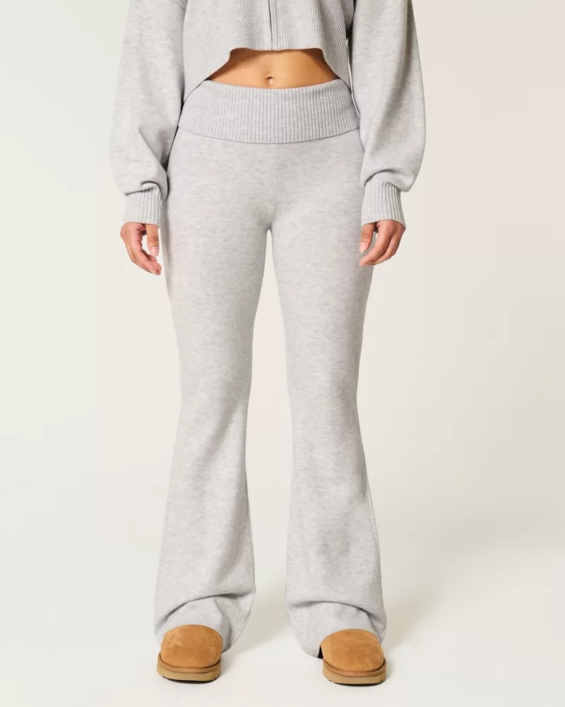 Super soft and cozy flare pants in sweater-knit fabric. Foldover waist, flared hem.