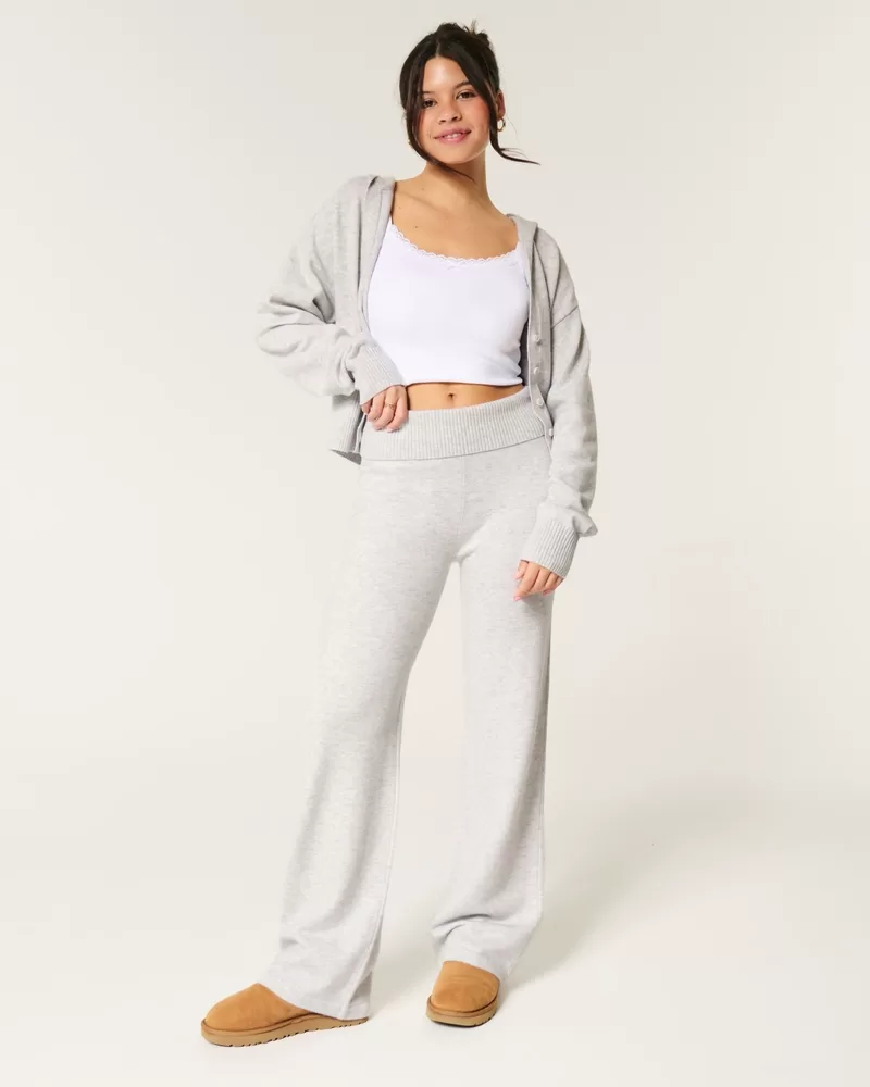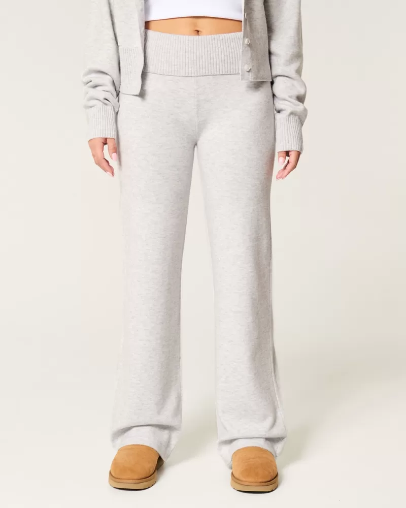 Gilly Hicks Sweater-Knit Foldover Waist Straight Pants