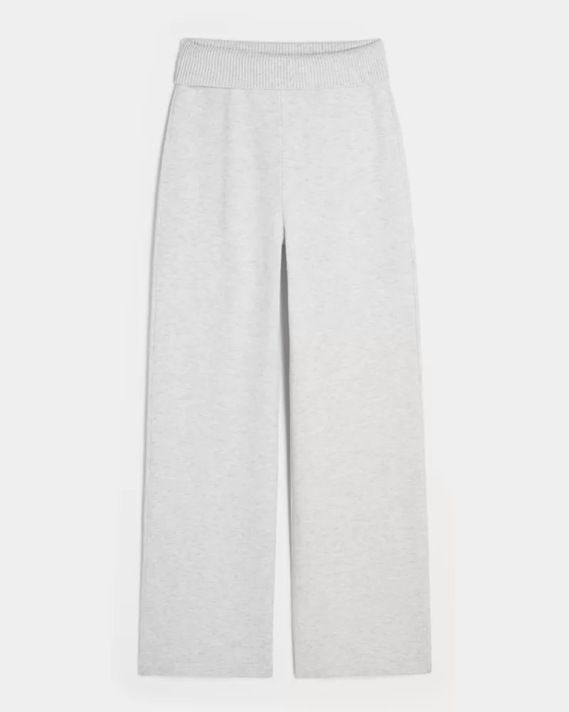 Cozy and super soft sweater-knit pants designed with a straight leg ribbed foldover waist. Imported.