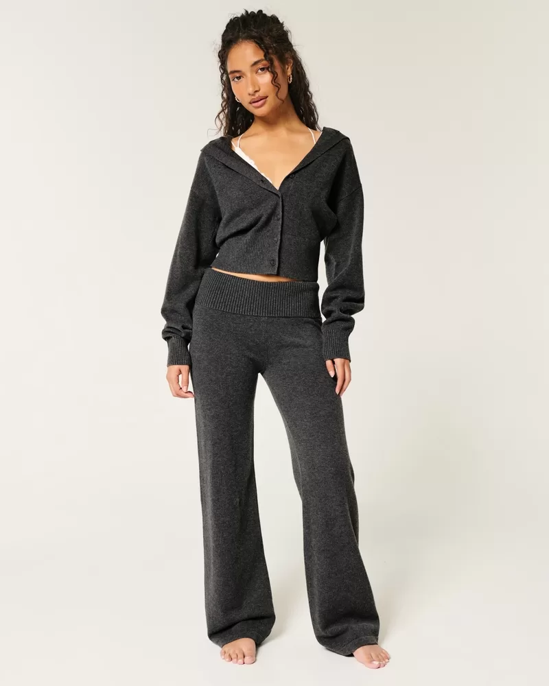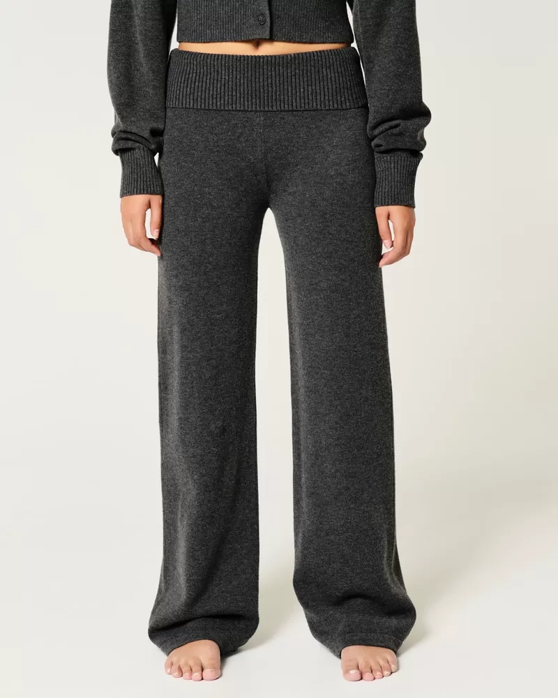 Gilly Hicks Sweater-Knit Foldover Waist Straight Pants