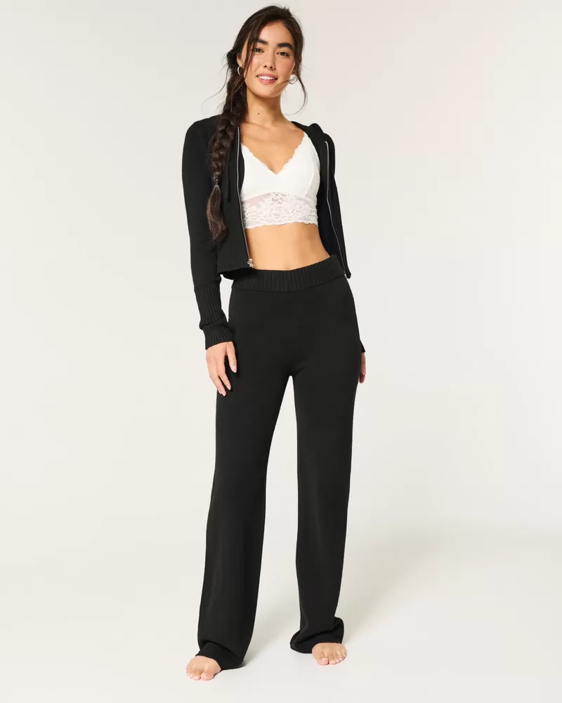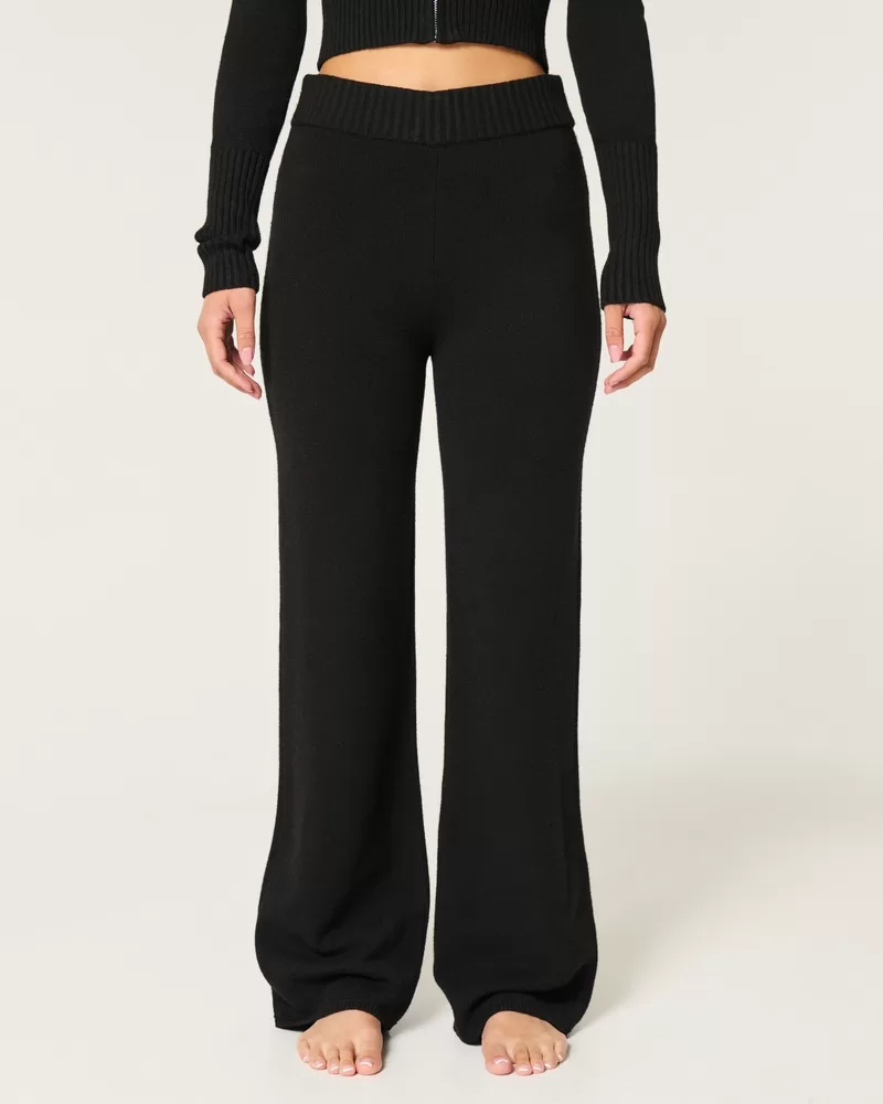 Cute and cozy pants in super soft sweater-knit fabric, designed with a straight leg. Ribbed waist. Imported.