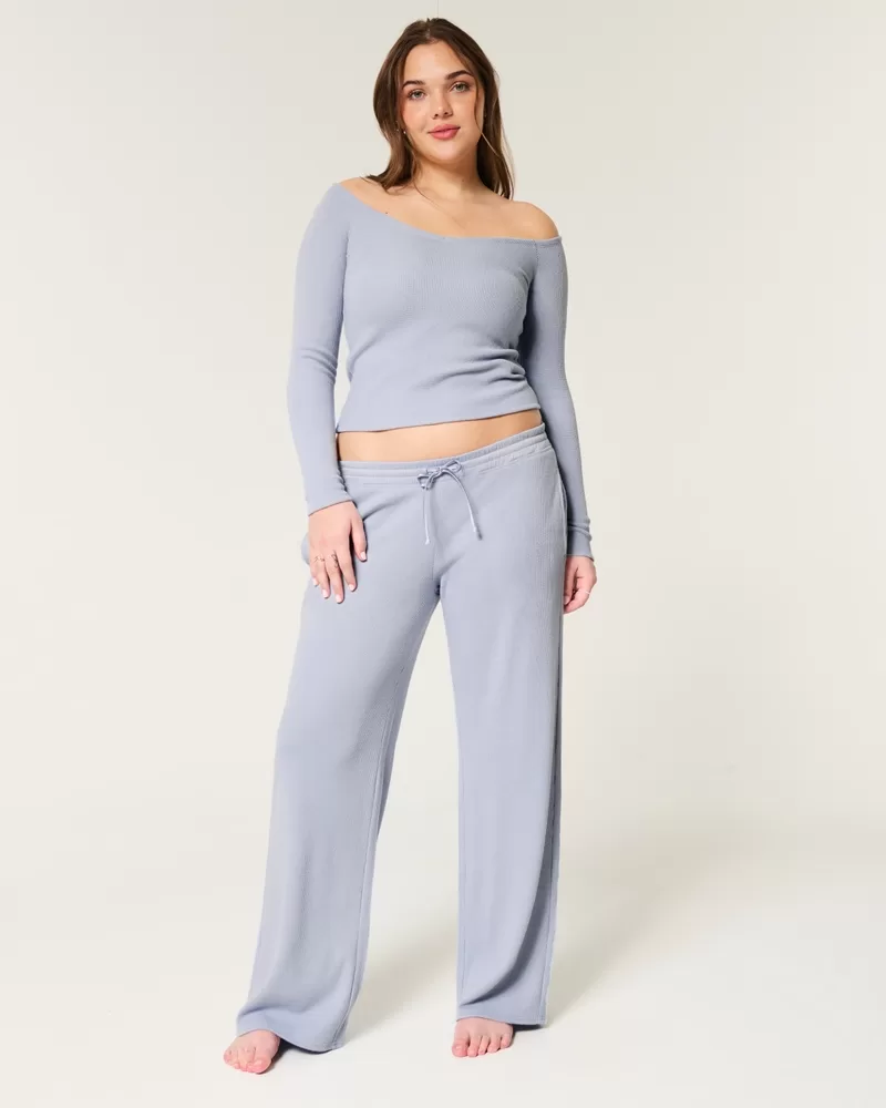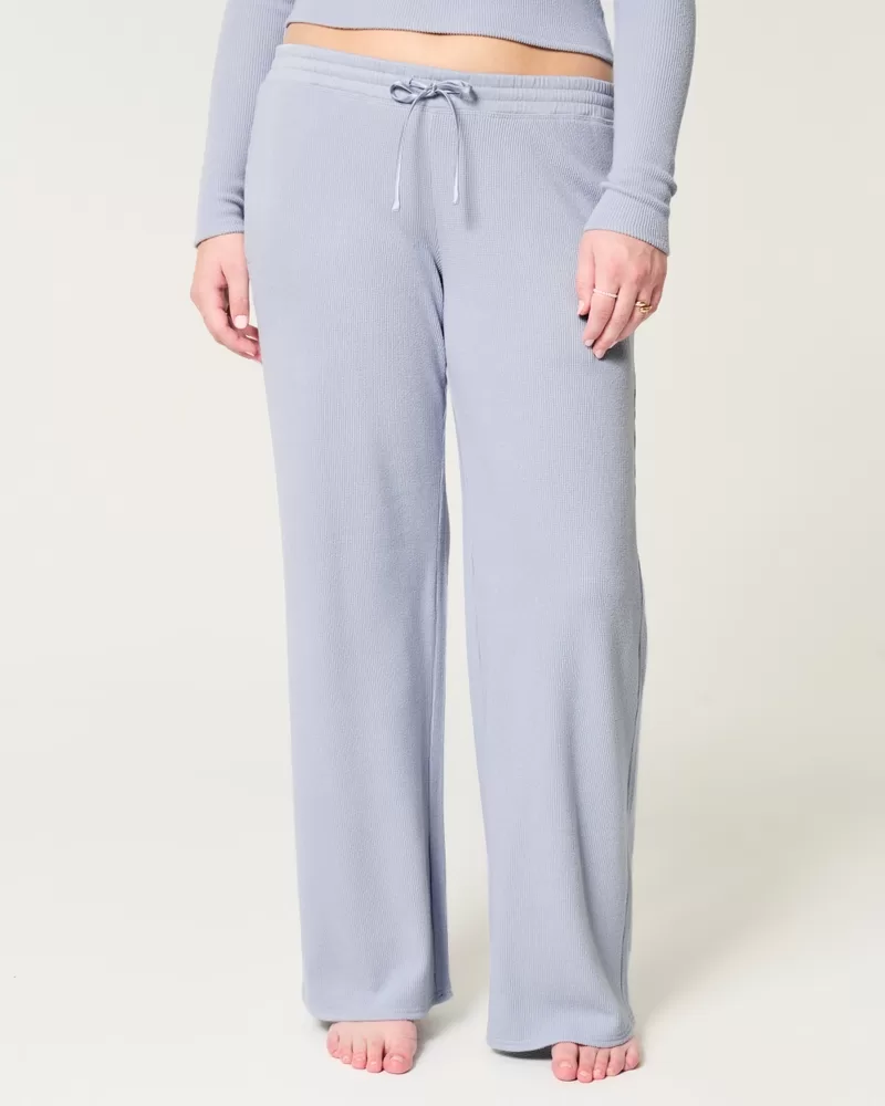 Super soft pants in cozy waffle fabric, designed with a straight leg and drawstring waist. Pockets. Imported.