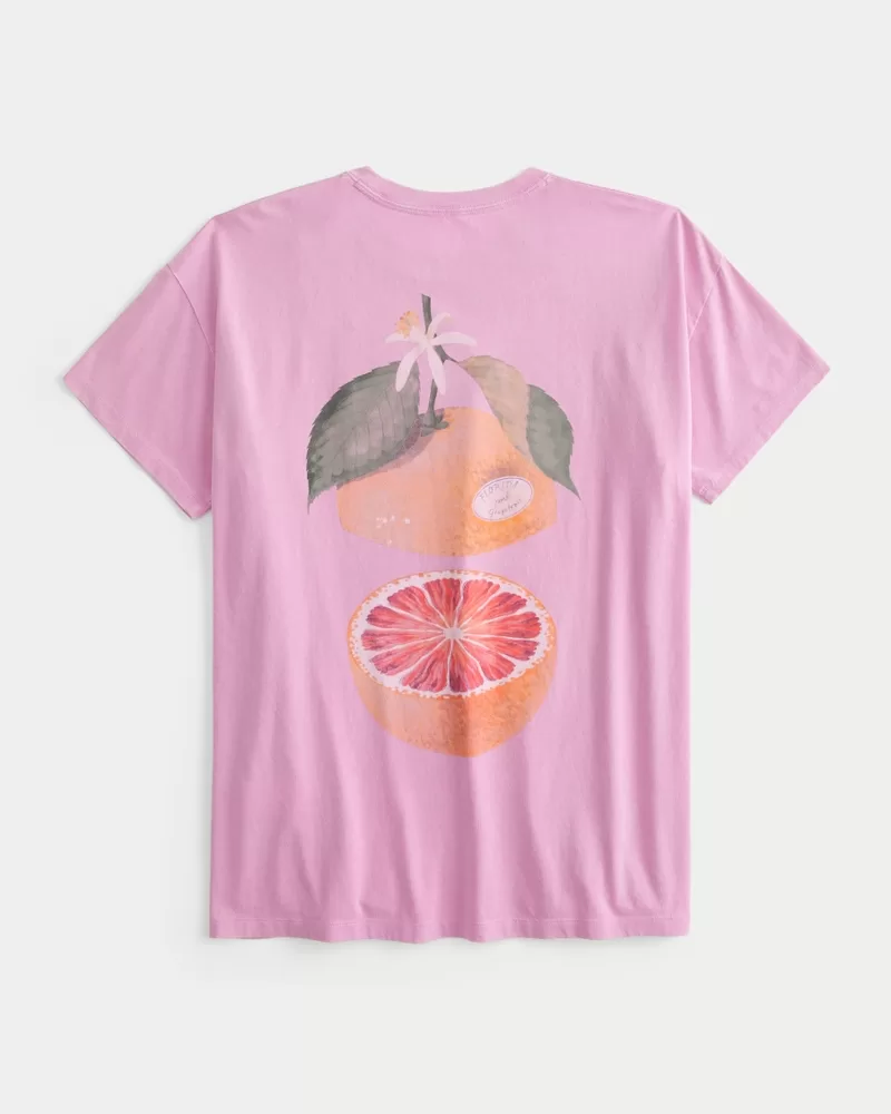 A super soft 100% cotton tee featuring grapefruit print graphics at the left chest and back. Crew neckline, short sleeves. Imported.