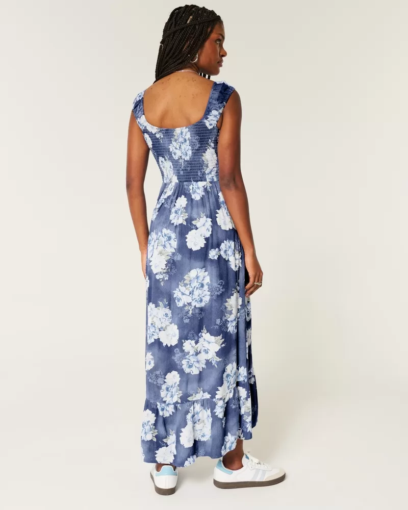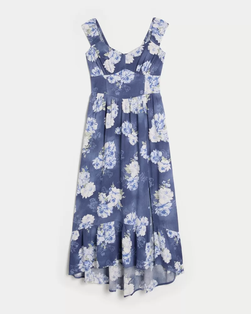 High-Low Hem Twist-Bust Midi Dress