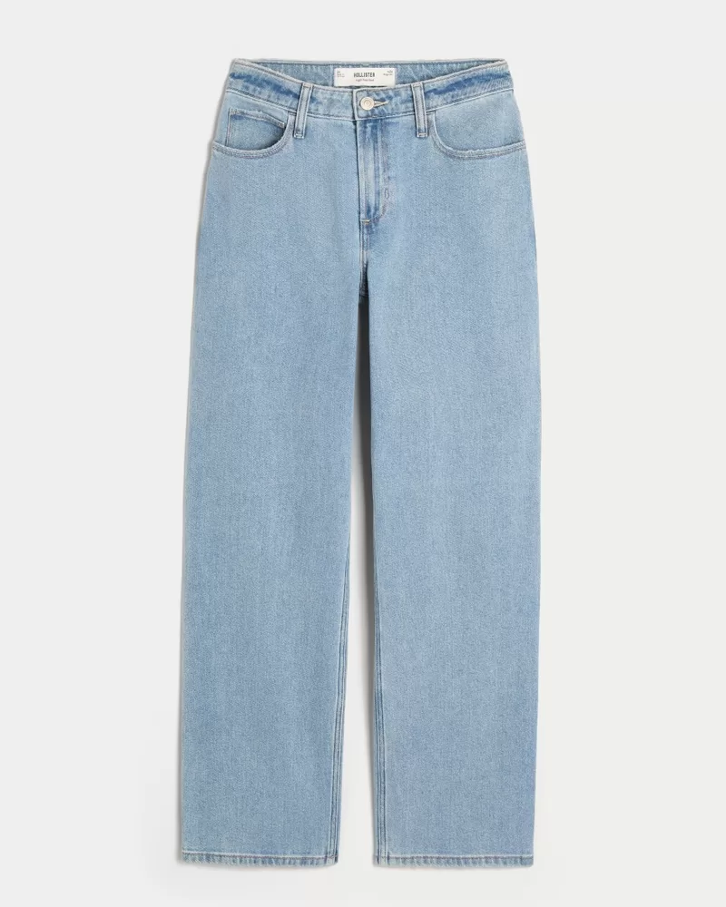 Your new fave jeans are designed with a high-rise waist and relaxed leg. Medium wash denim.