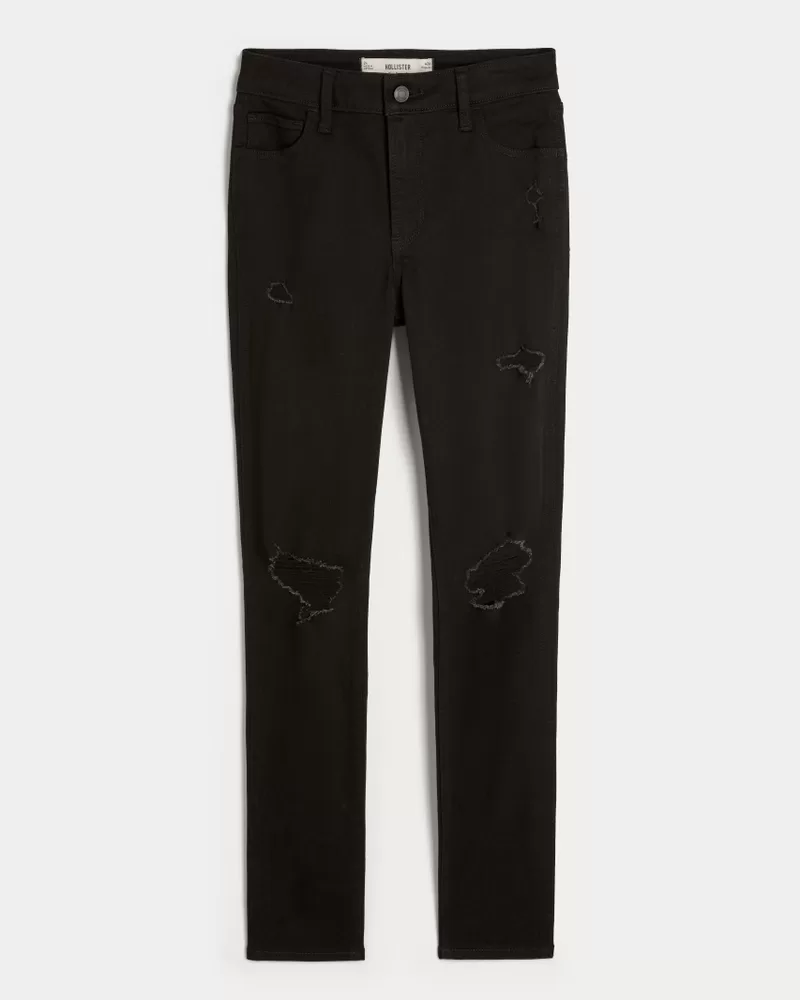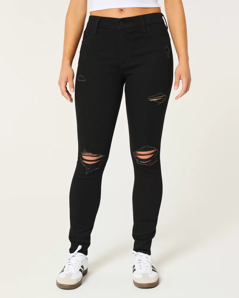 High-Rise Ripped Black Super Skinny Jeans,High-Rise Ripped Black Super Skinny Jeans
