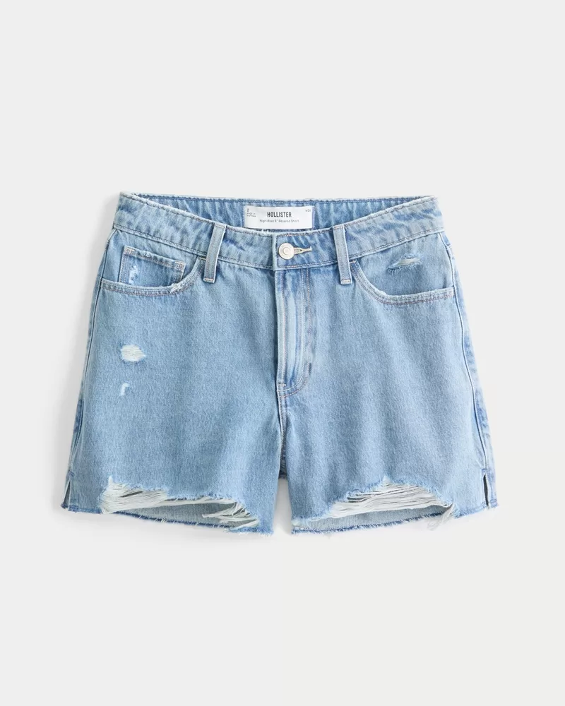 High-Rise Ripped Medium Wash Relaxed Denim Shorts 5″,High-Rise Ripped Medium Wash Relaxed Denim Shorts 5″