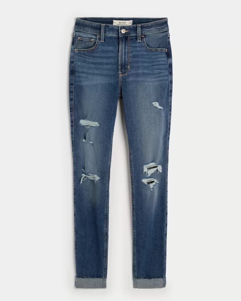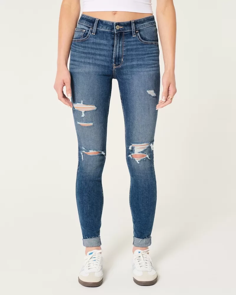 High-Rise Ripped Medium Wash Super Skinny Jeans