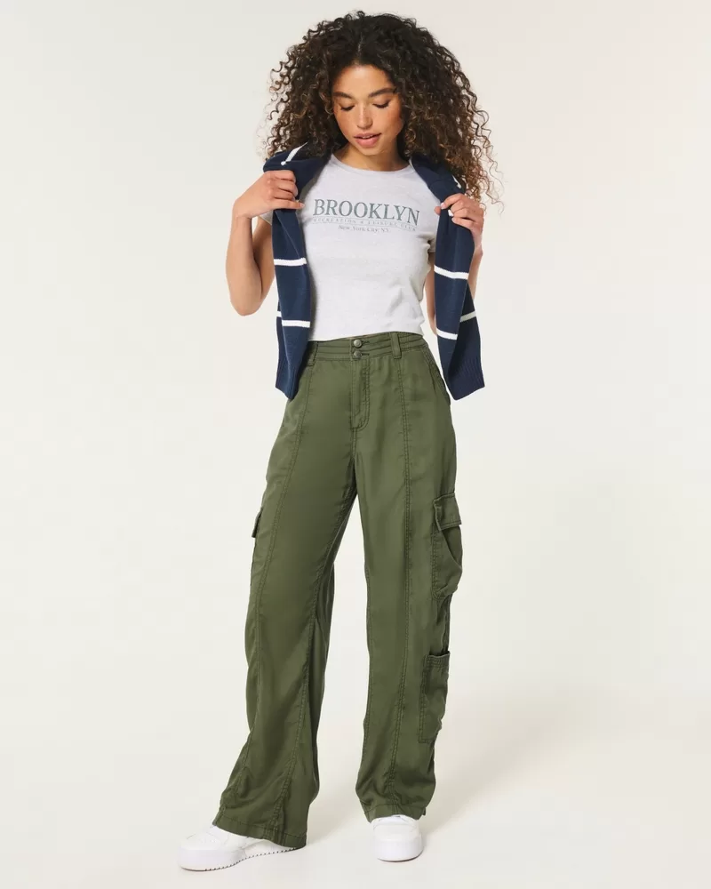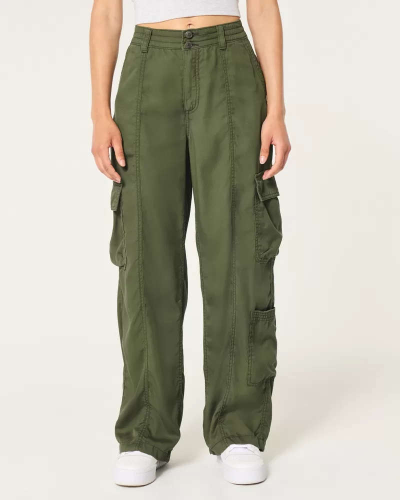 High-Rise Tencel Baggy Cargo Pants