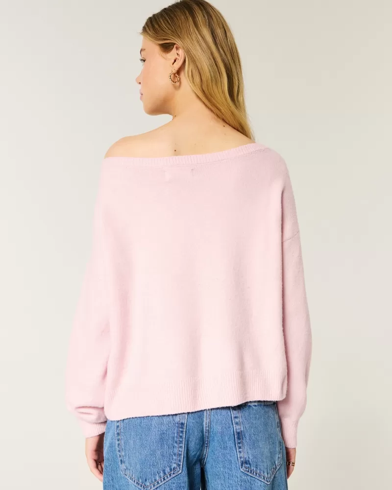 Hollister Comfy Cloud Easy Off-the-Shoulder Bow Graphic Sweater