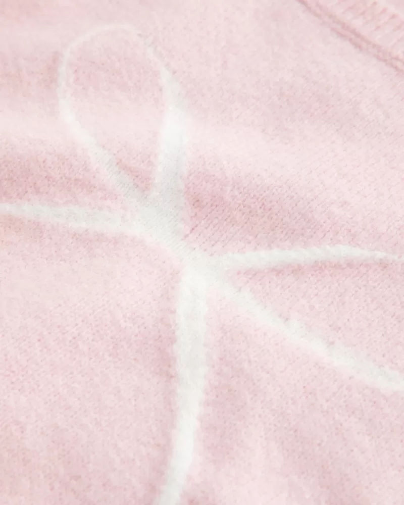 A cozy and super soft sweater with a slouchy neckline that can be worn off one shoulder. Cute bow intarsia graphic, ribbed trims, long sleeves. Easy Fit. Imported.